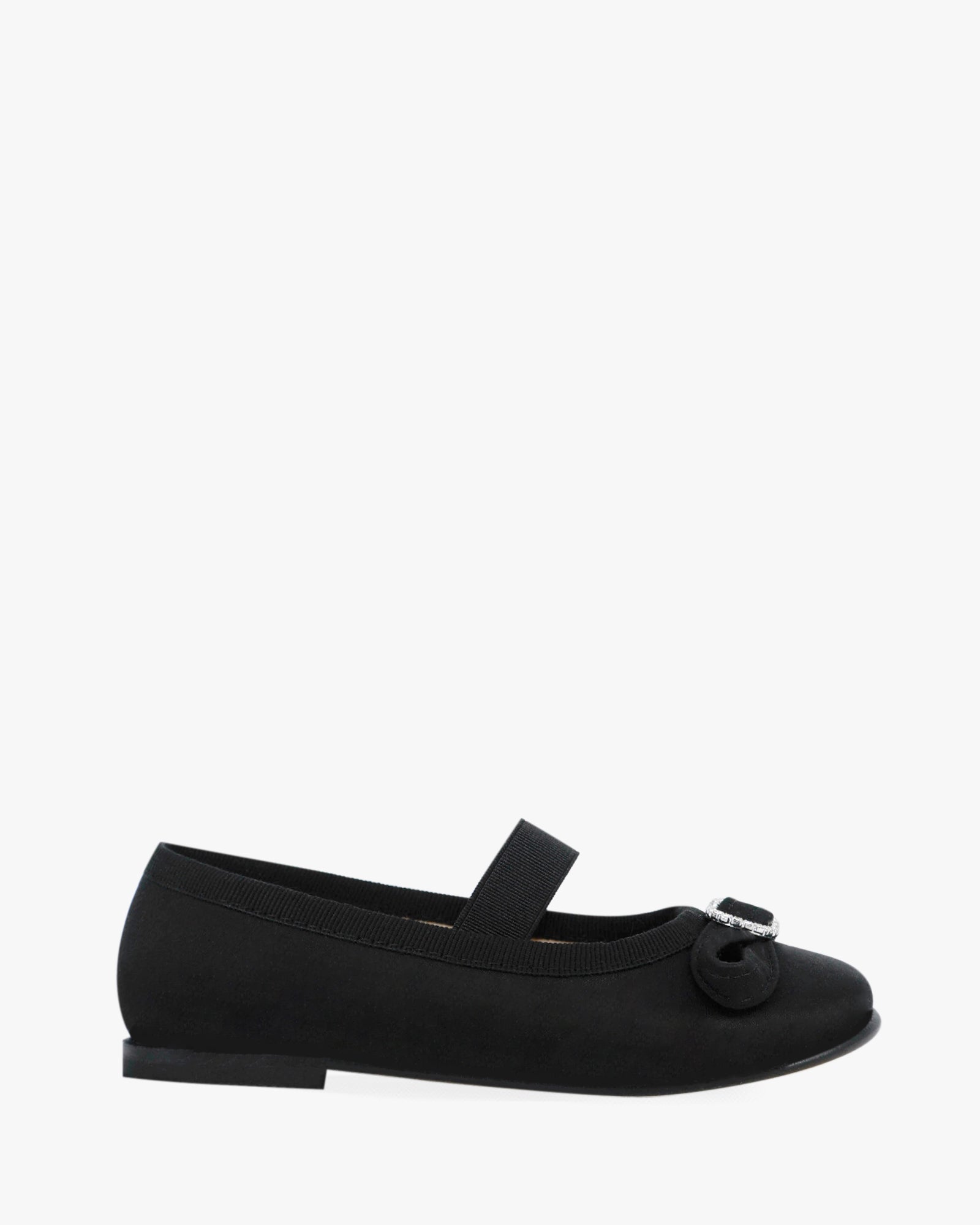 The Andrea Wazen AMIRA MINI BALLERINA for kids is crafted from luxurious satin and features the brand’s signature bow on the upper, accented with a sparkling crystal buckle in the center. Elegant and playful, these charming ballerinas are perfect for special occasions and stylish little feet.