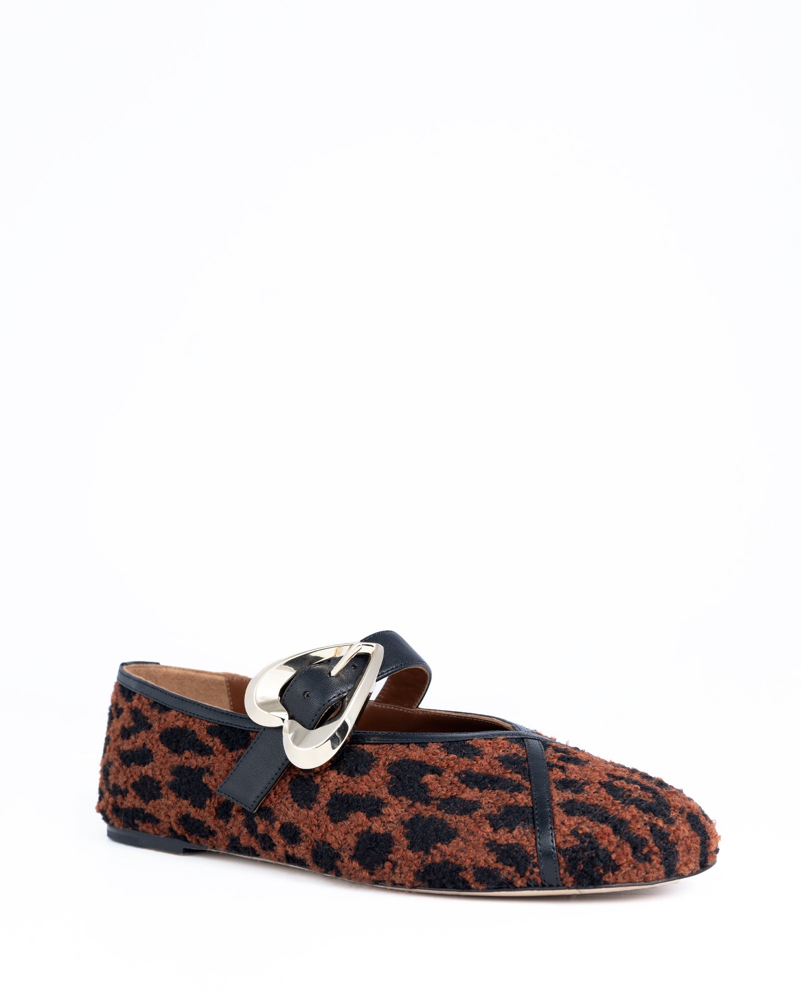 The Barbara Ballerina Madame by Andrea Wazen is a refined take on everyday elegance. Crafted from soft Madame fabric and smooth leather, the style features a delicate dotted Bordeaux-on-pink pattern that adds a touch of playful femininity. Finished with the brand’s signature AW heart buckle.