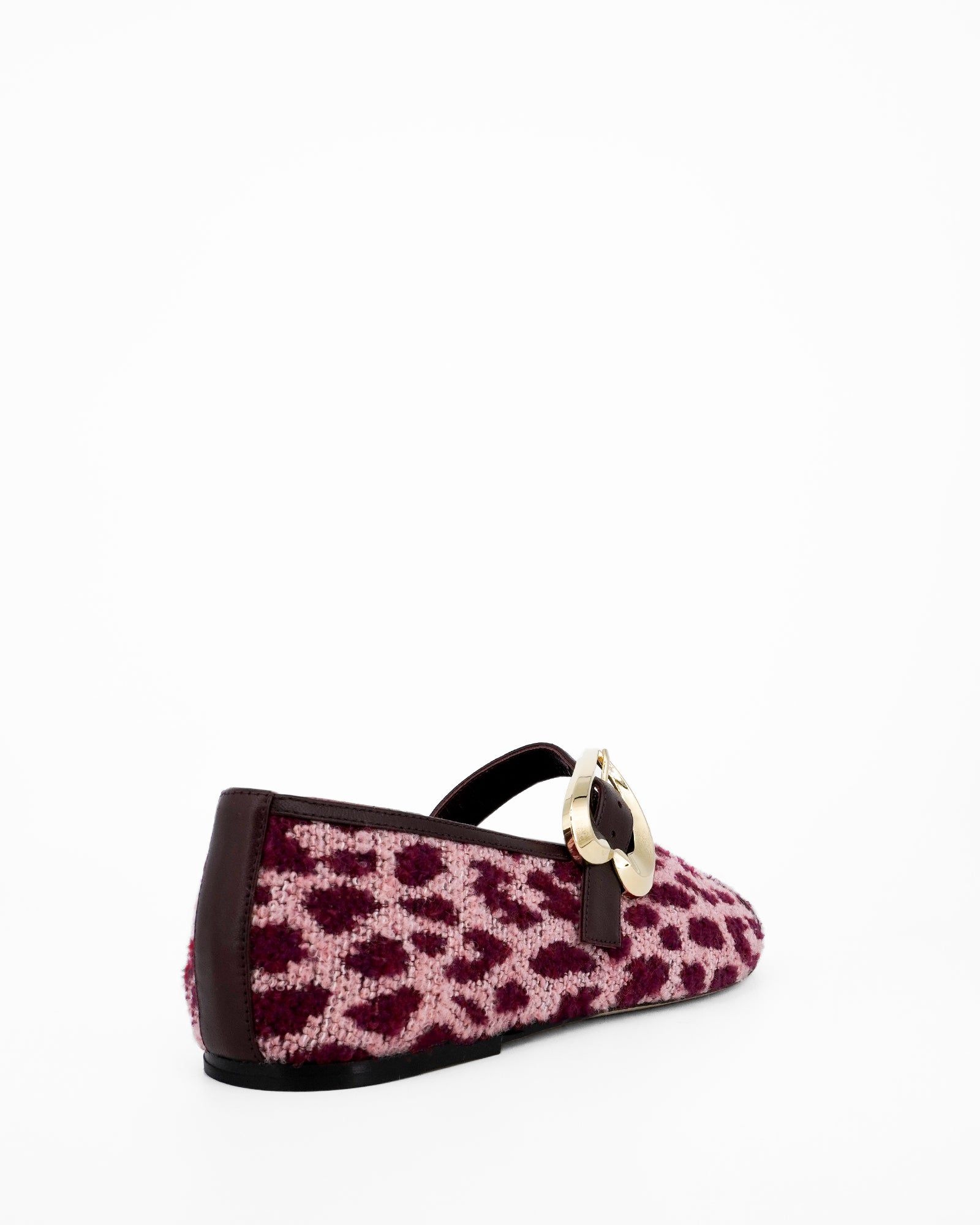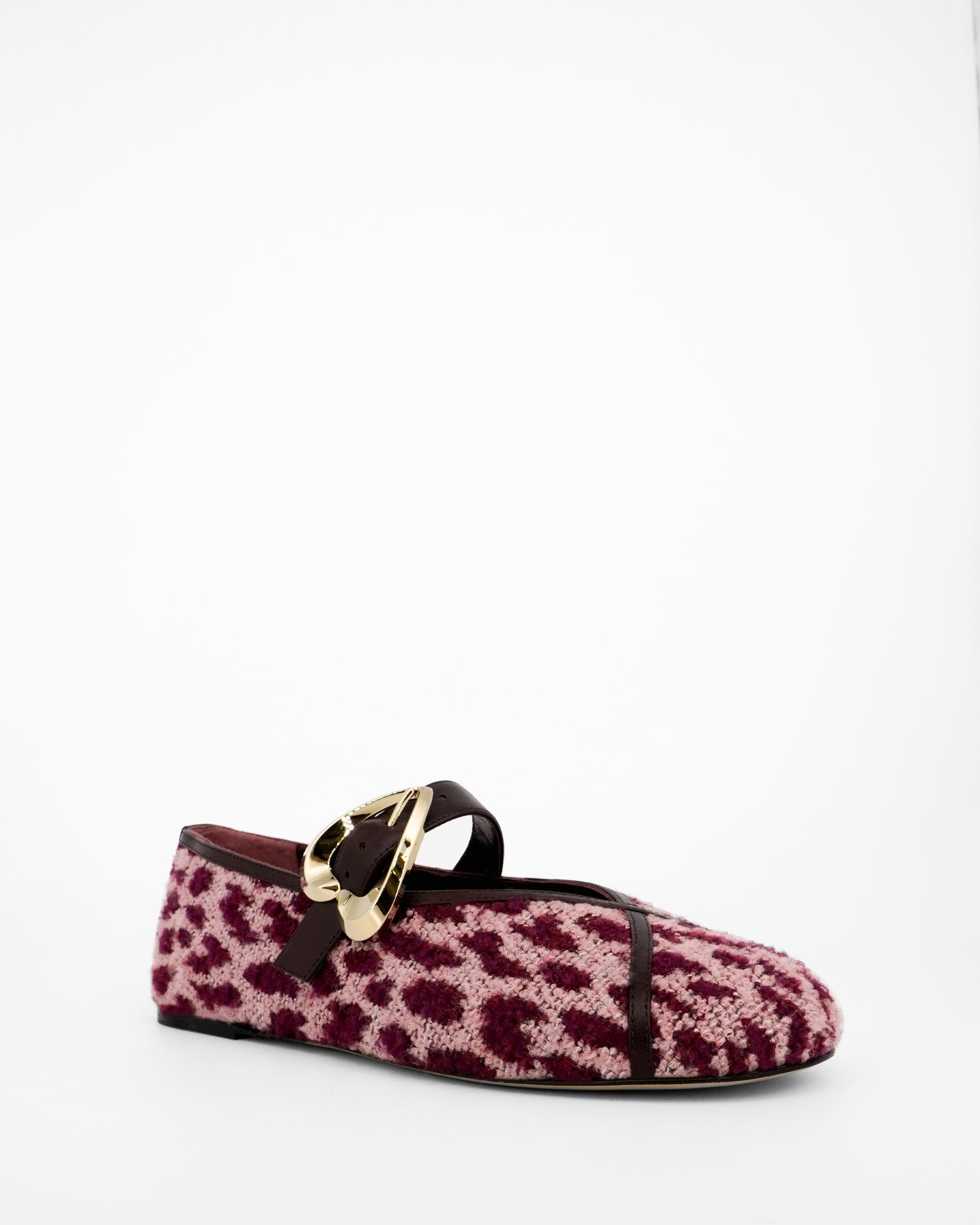 The Barbara Ballerina Madame by Andrea Wazen is a refined take on everyday elegance. Crafted from soft Madame fabric and smooth leather, the style features a delicate dotted Bordeaux-on-pink pattern that adds a touch of playful femininity. Finished with the brand’s signature AW heart buckle.