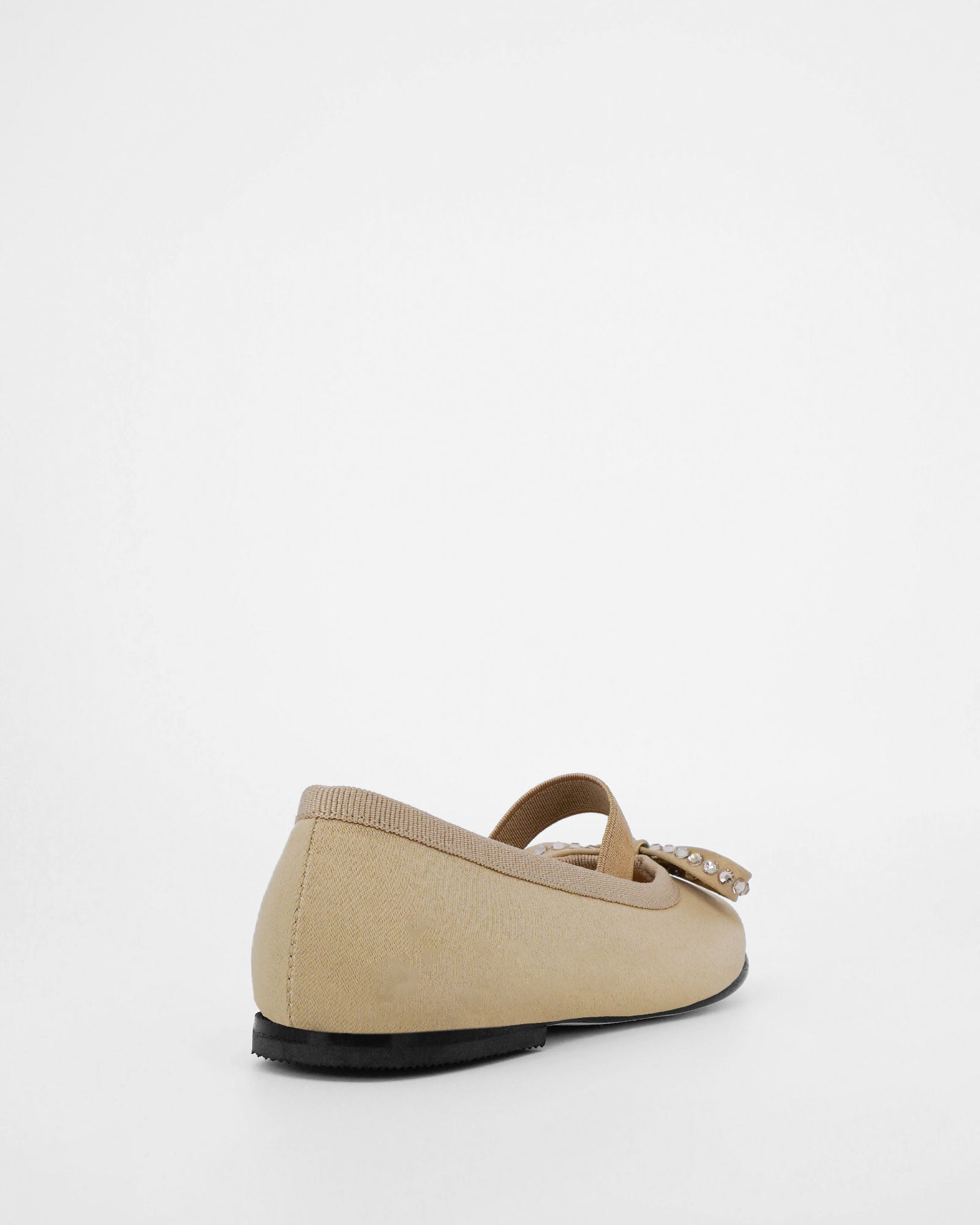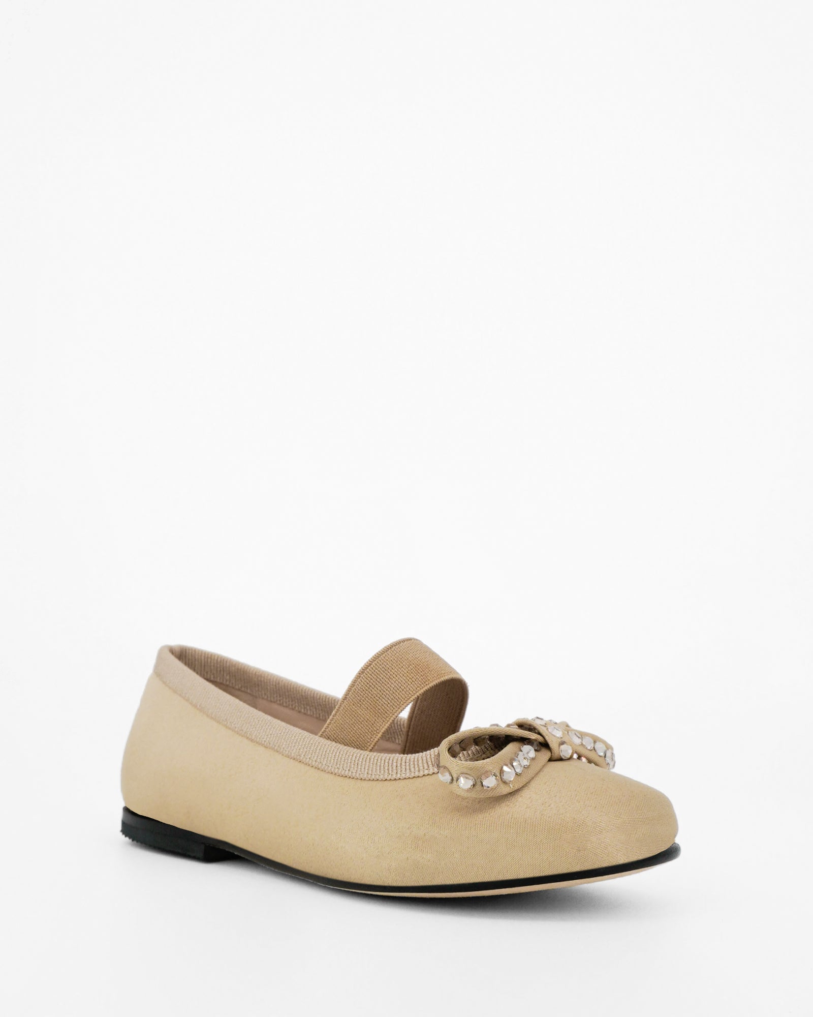 The BARBARA MINI BALLERINA by Andrea Wazen is a charming kids’ shoe that reflects the brand’s timeless elegance. Crafted from soft satin, this delicate ballerina style features Andrea Wazen’s signature bow, beautifully embellished with crystals for a touch of sparkle. Designed to blend comfort with sophistication, the Barbara Mini Ballerina makes every step feel special—perfect for little ones who love a hint of shine and grace.