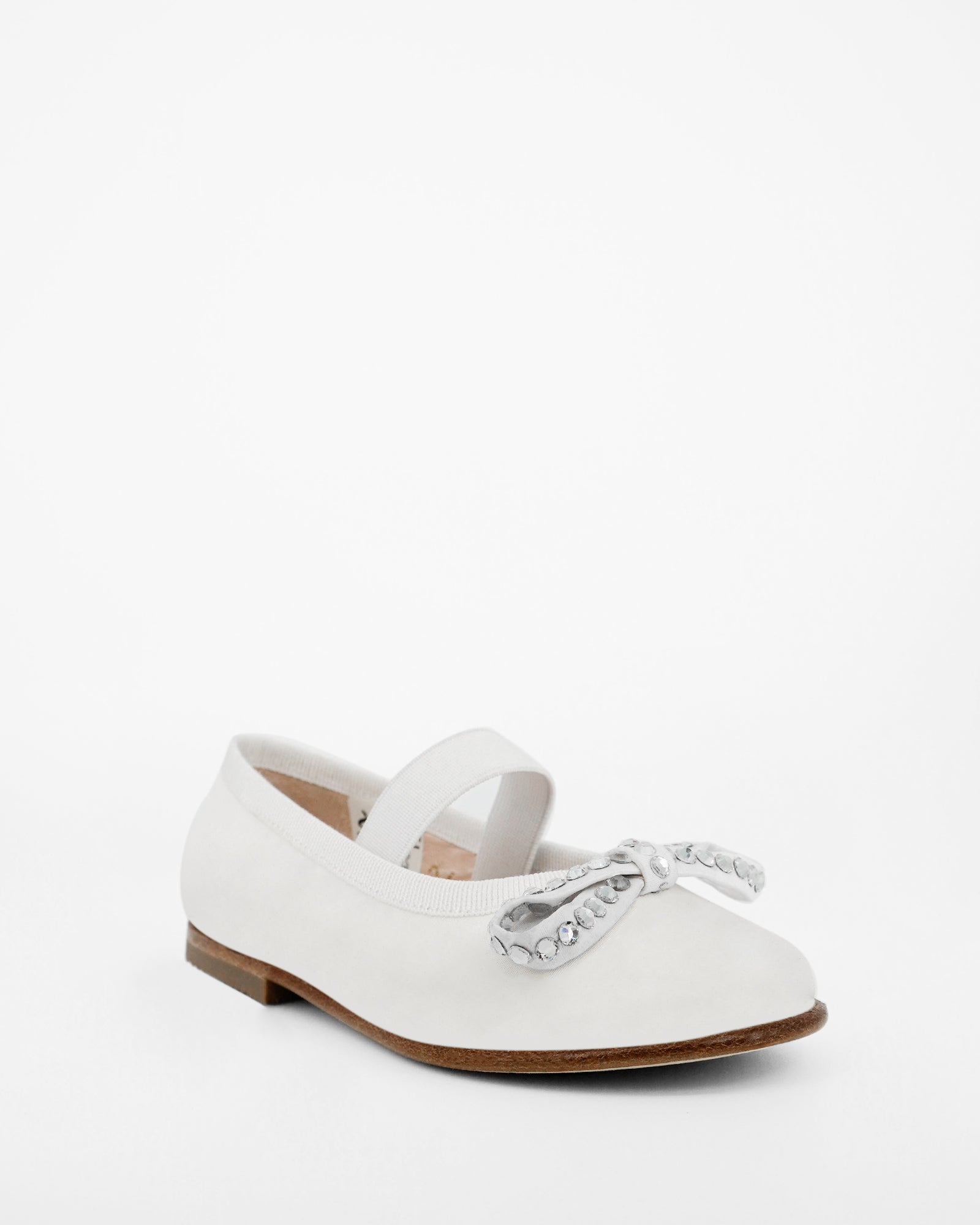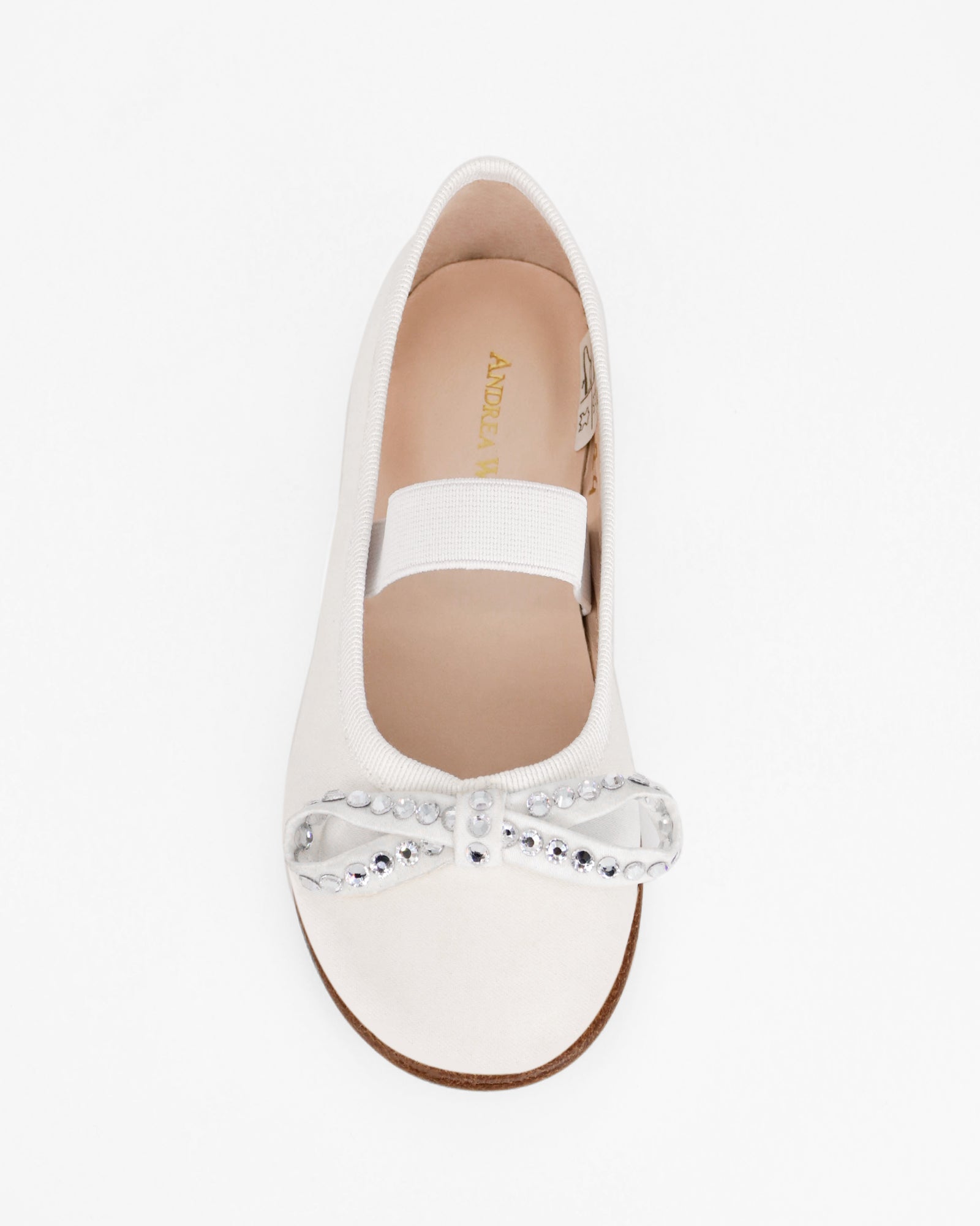 The BARBARA MINI BALLERINA by Andrea Wazen is a charming kids’ shoe that reflects the brand’s timeless elegance. Crafted from soft satin, this delicate ballerina style features Andrea Wazen’s signature bow, beautifully embellished with crystals for a touch of sparkle. Designed to blend comfort with sophistication, the Barbara Mini Ballerina makes every step feel special—perfect for little ones who love a hint of shine and grace.