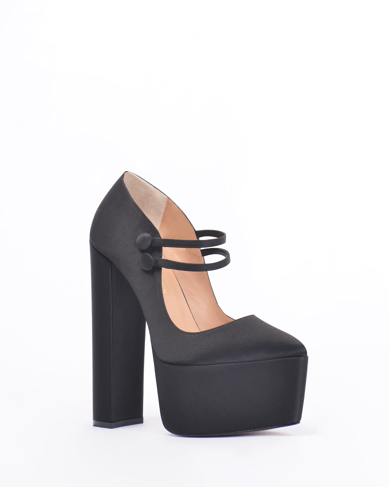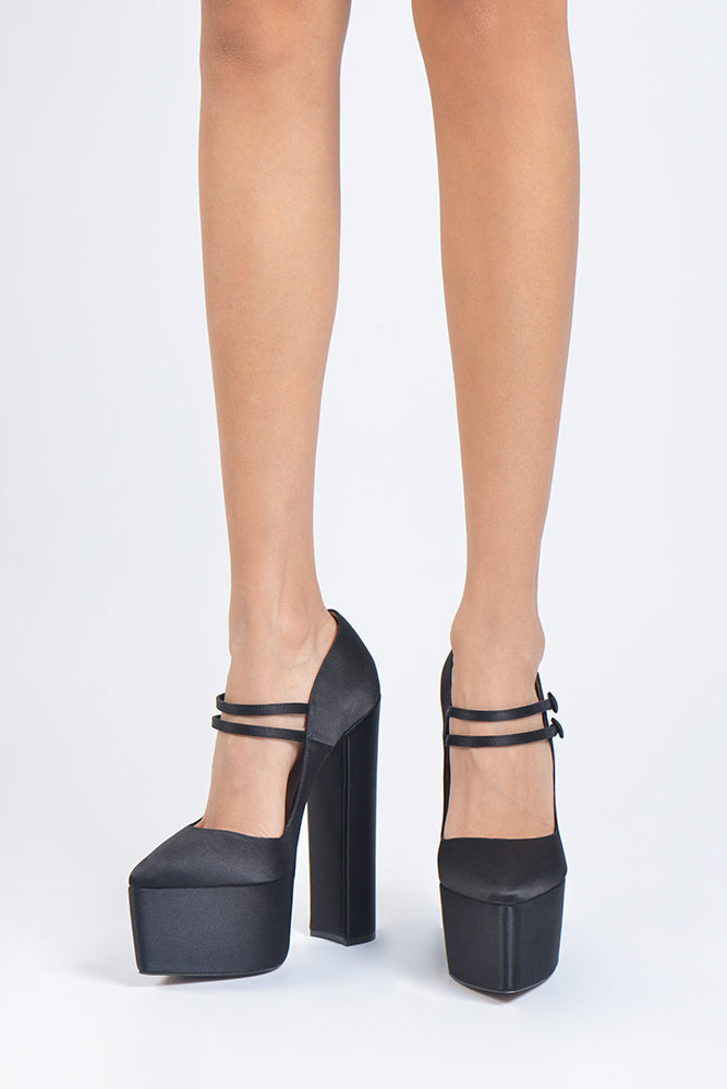 The "Double Jeu" platform is a striking fashion statement. A towering 165mm platform heel that commands attention. Crafted from luxurious satin fabric, and a pointy toe silhouette, they strike the perfect balance between elegance and edginess.