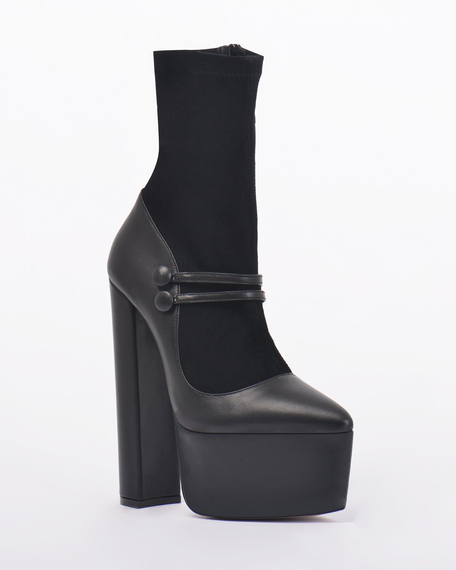 The DOUBLE JEU SOCKS platform is a striking fashion statement. A towering 165mm platform heel that commands attention. Crafted from High quality leather material & luxurious suede fabric, a pointy toe silhouette, and a built in sock, they strike the perfect balance between elegance and edginess.