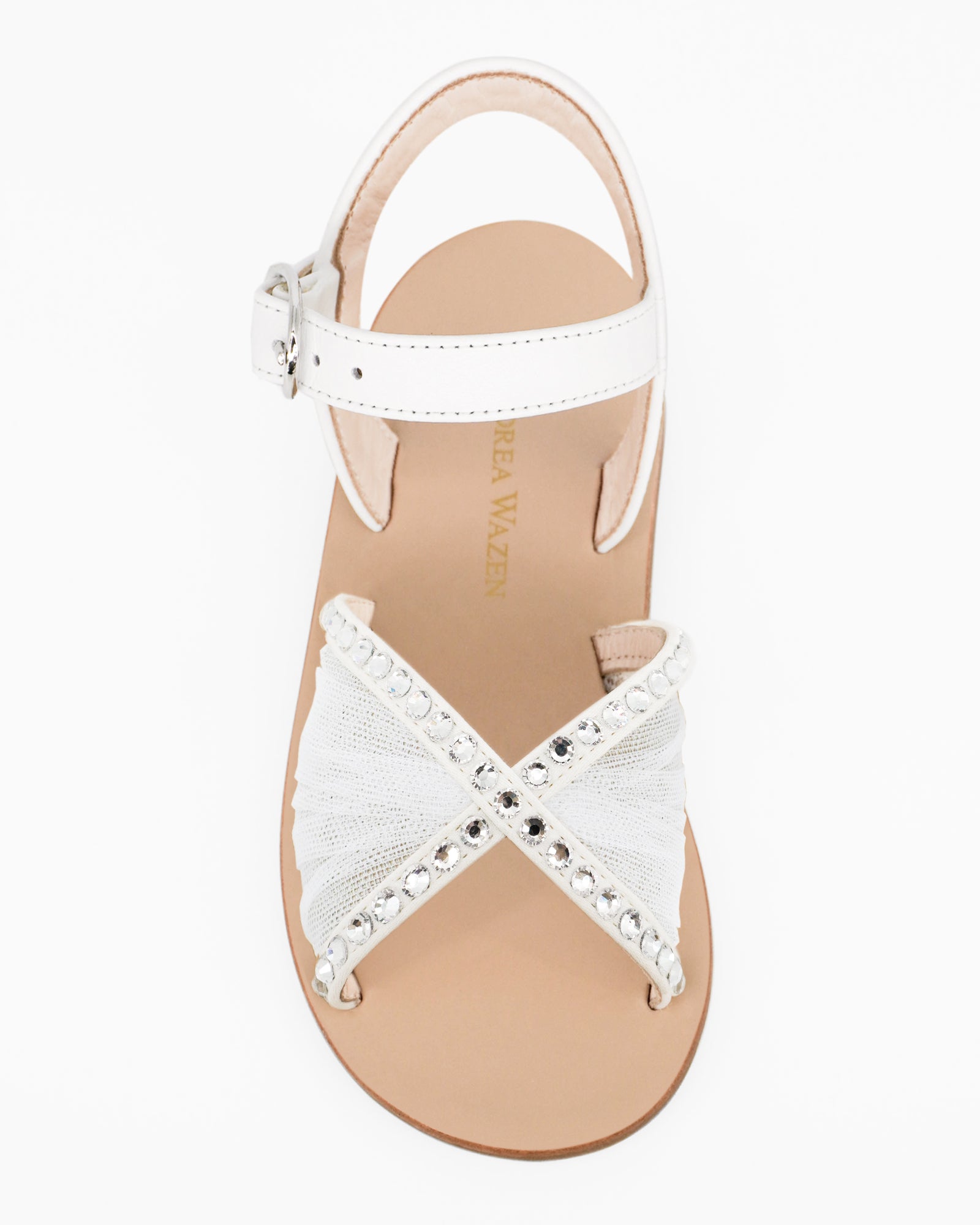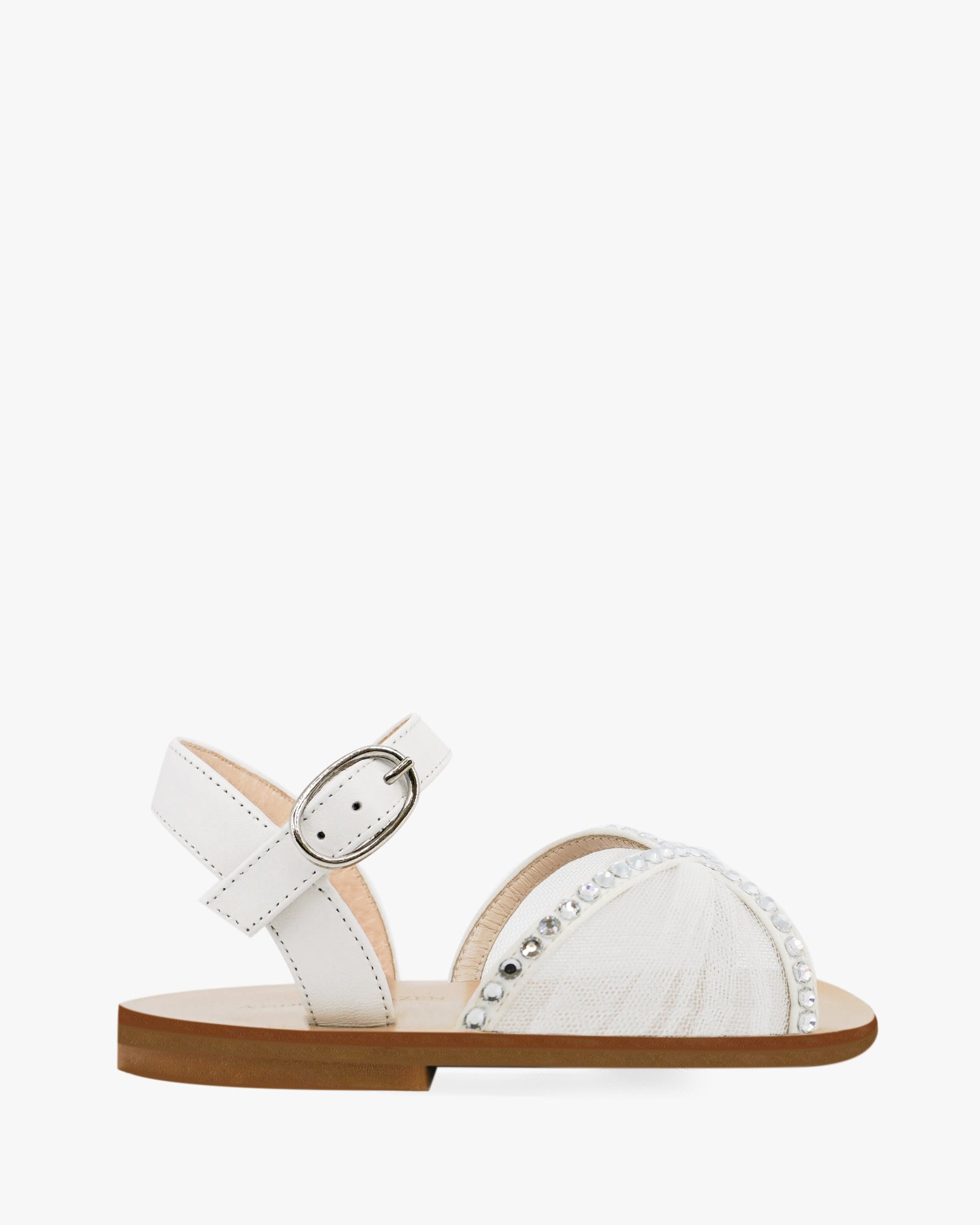The Katy Mini Glitz, crafted from leather, tulle, and adorned with crystals, is the ultimate glamorous mini-me style. This chic version of the Katy combines soft leather with delicate tulle for a feminine touch, while the crystals on the upper add an extra layer of sparkle and shine. With an open toe, a dainty ankle strap, and a buckle on the side, the Katy Mini Glitz ensures your little one can shine as brightly as you.