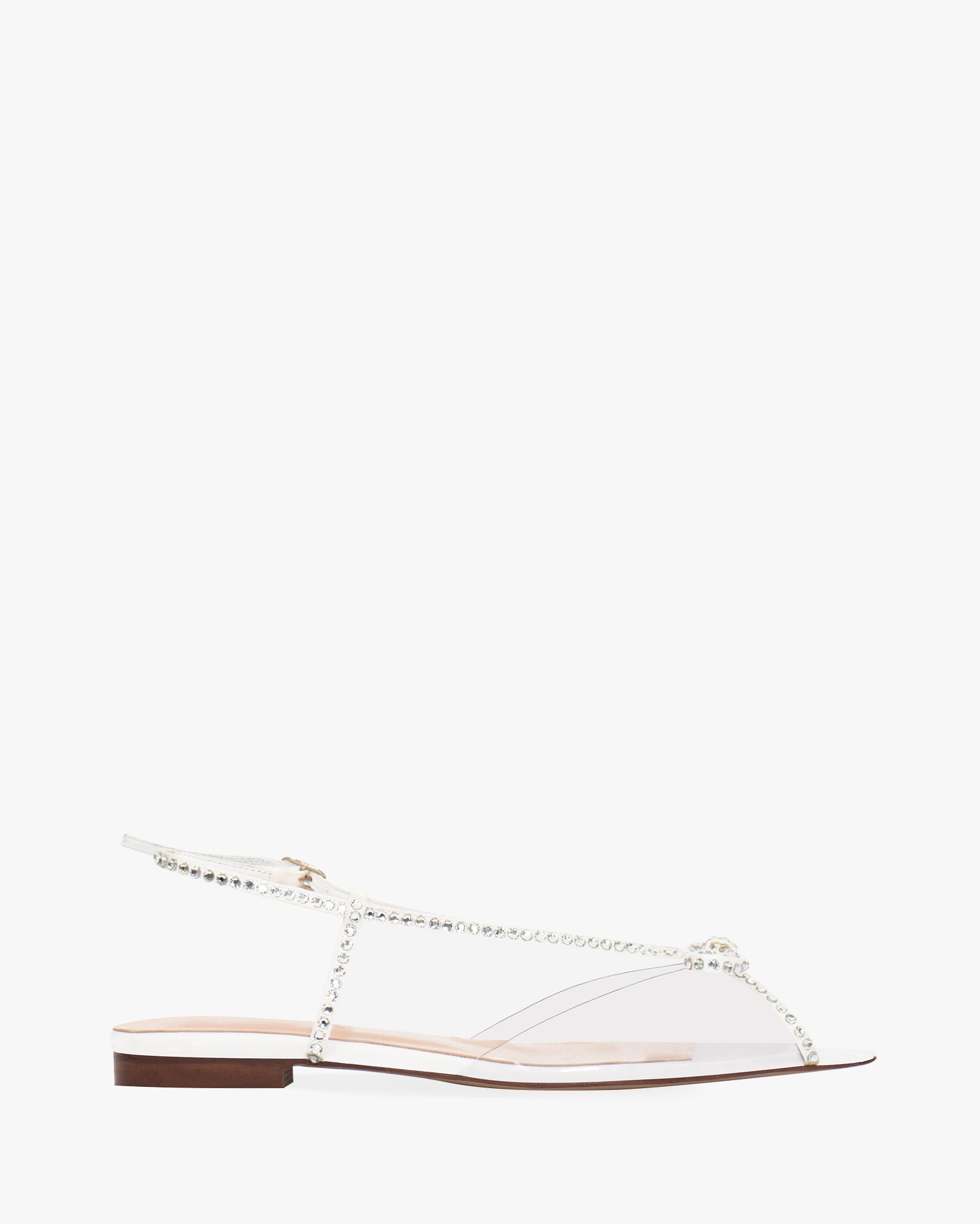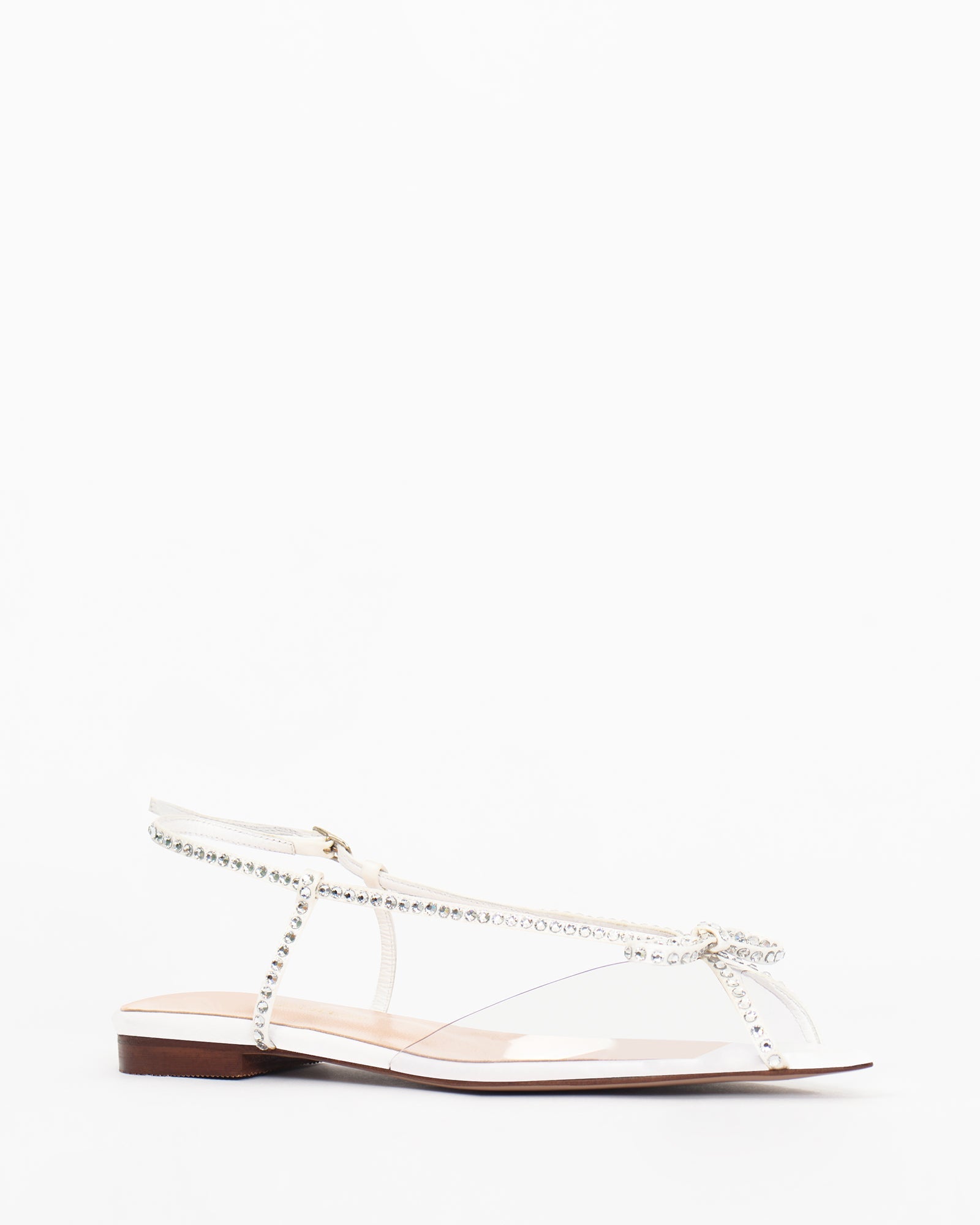 The Andrea Wazen KAY SLIPPER is a chic blend of leather, colored PVC, and crystals. Featuring a bow on the upper, open toe, and a stylish 20mm heel, it effortlessly combines comfort with elegance. This slipper is a statement piece, showcasing Andrea Wazen's expertise in creating fashionable and comfortable footwear.