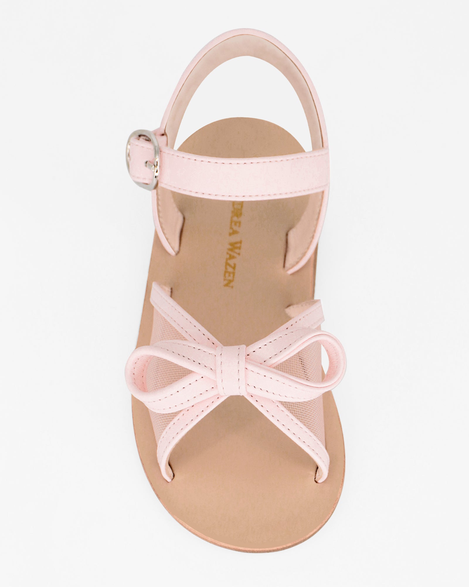 The Kay Mini Mesh is a fun and stylish mini version of the iconic Andrea Wazen Kay Sandal, designed for little ones. Made from soft leather with see-through mesh on the sides, it features the brand's signature bow on the upper for a playful touch. Comfortable and cute, the Kay Mini Mesh is perfect for everyday wear, giving you and your little one the chance to match in a light and breezy style.