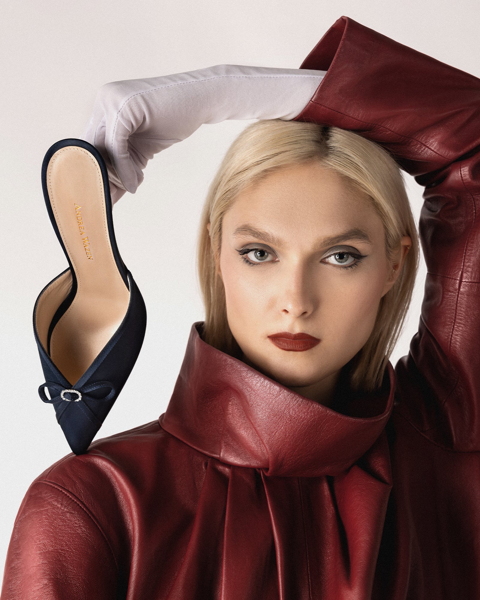 - Leather insole with ”Andrea Wazen” stamped in gold