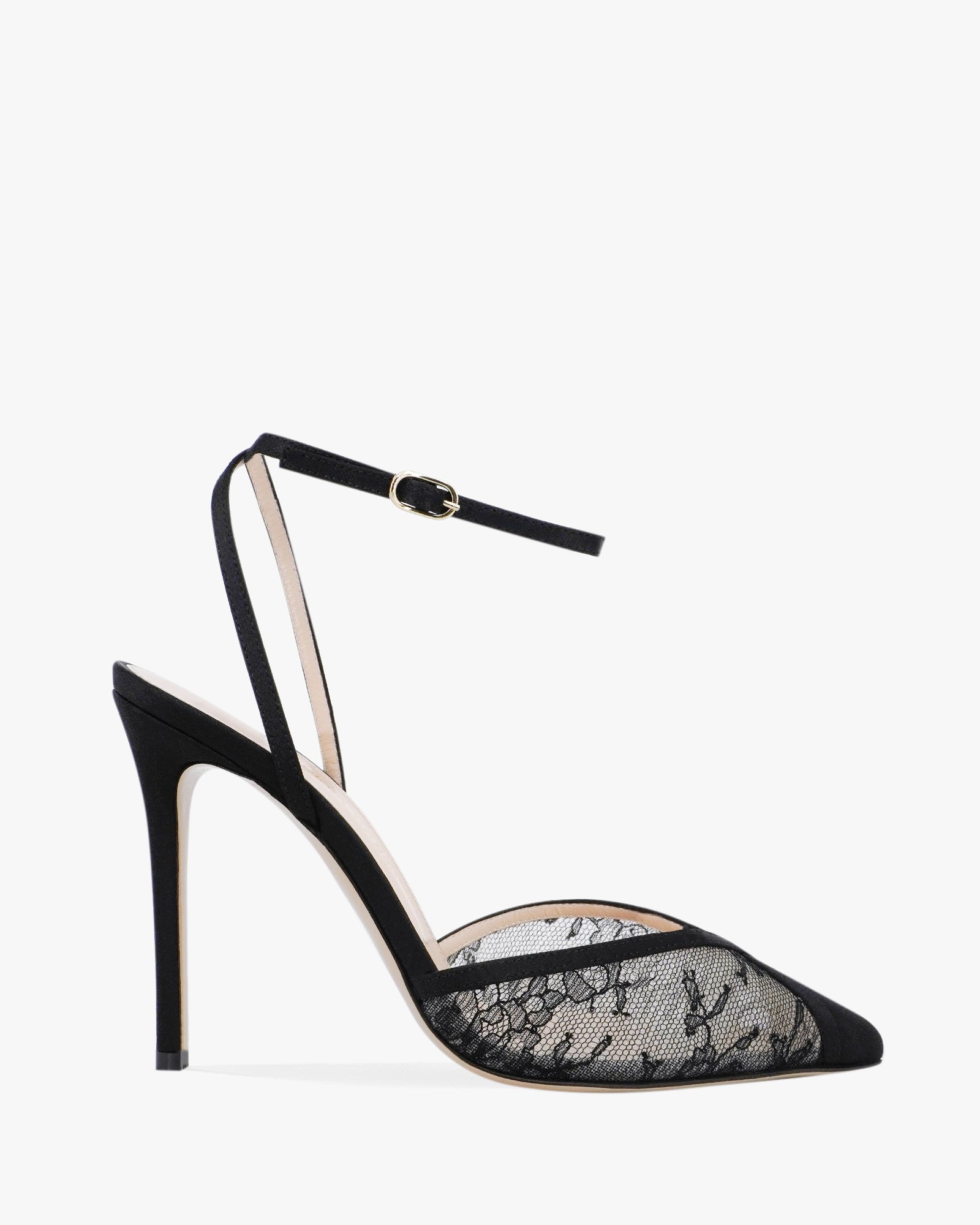 - Satin and lace upper