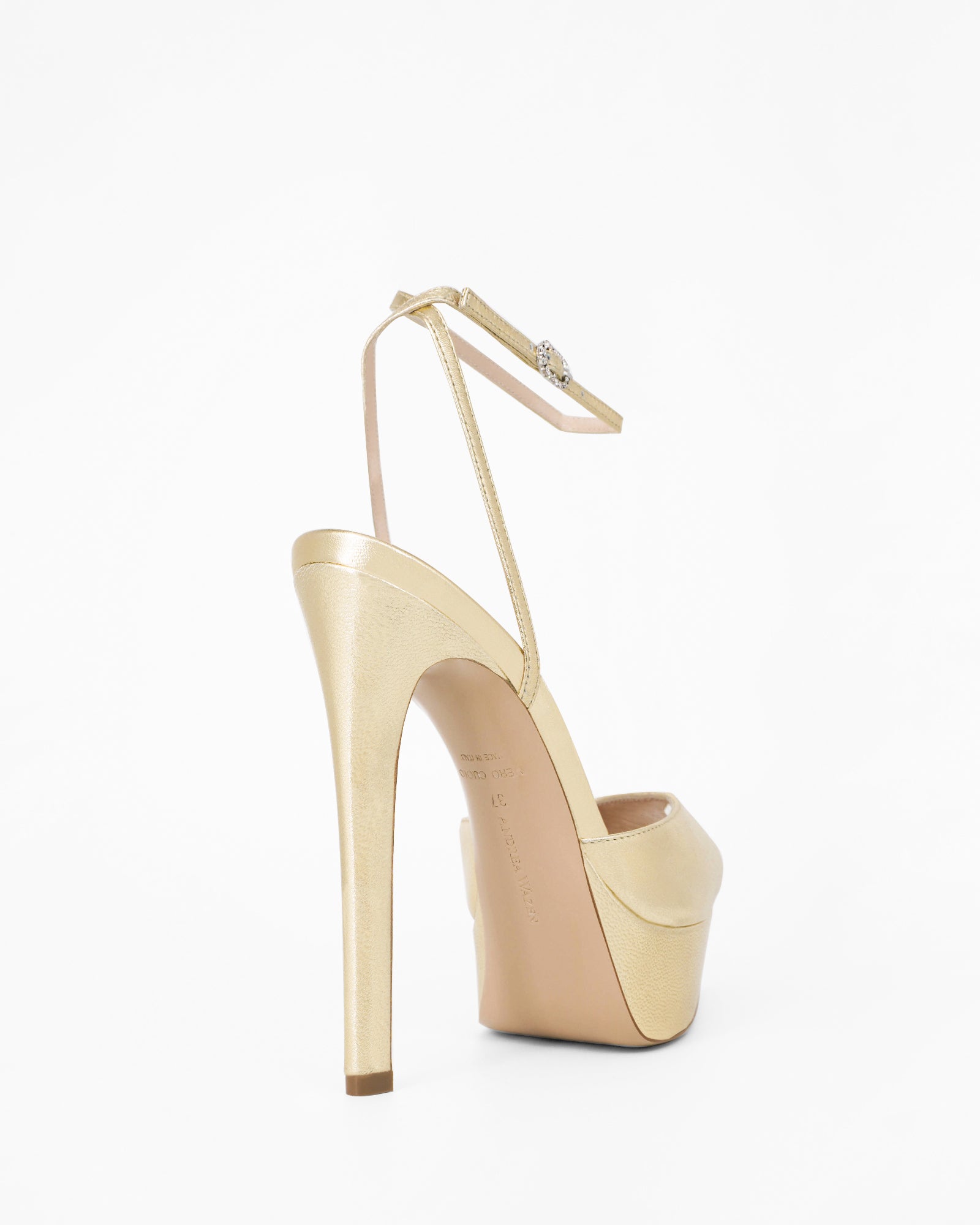 The Loulou Platform 140 mm in metallic leather is a bold statement silhouette with a refined edge. Crafted in shimmering leather, it features a sculpted platform, while the delicate ankle strap ensures a secure, feminine fit. Perfect for evening and standout occasions.